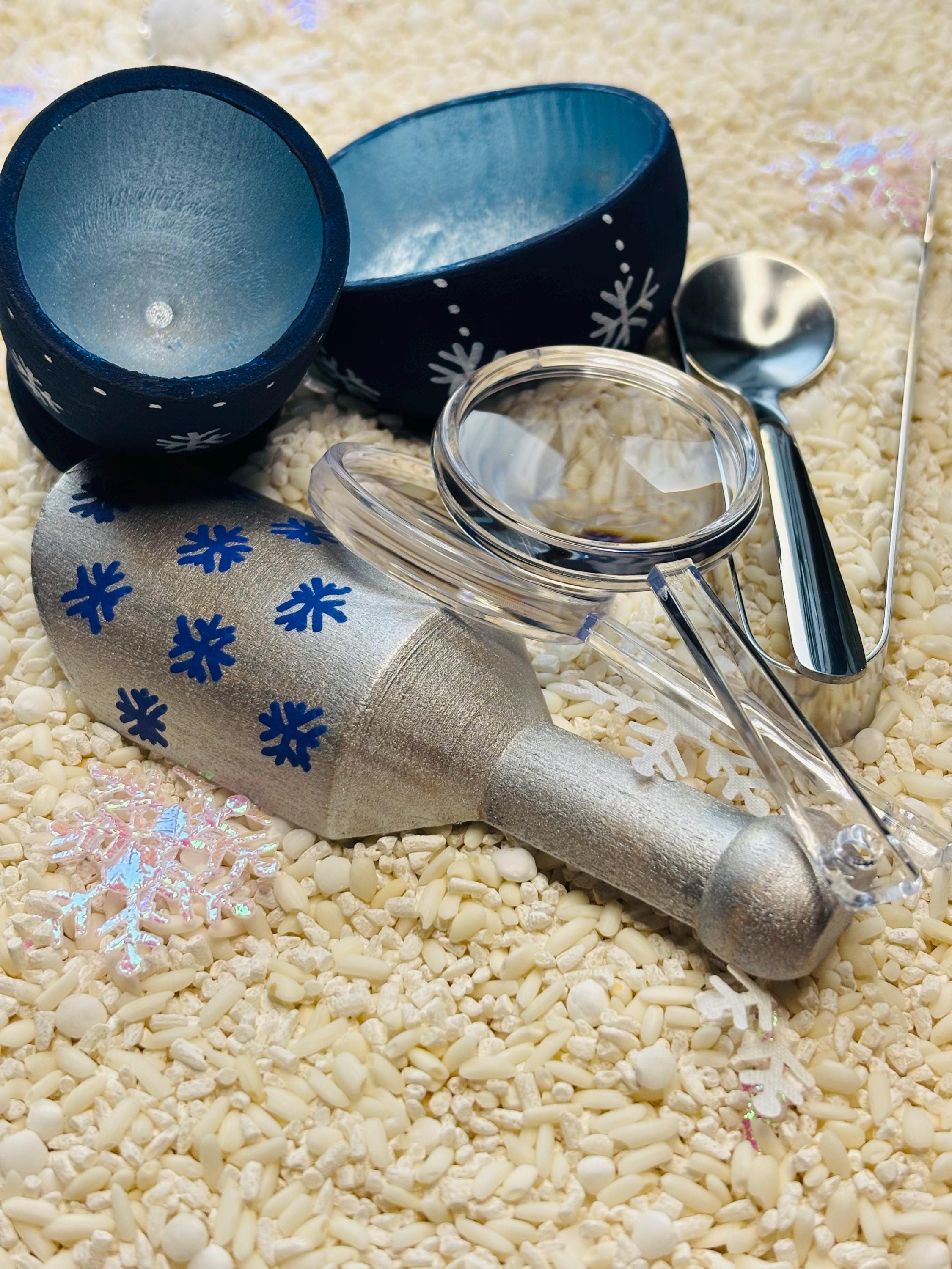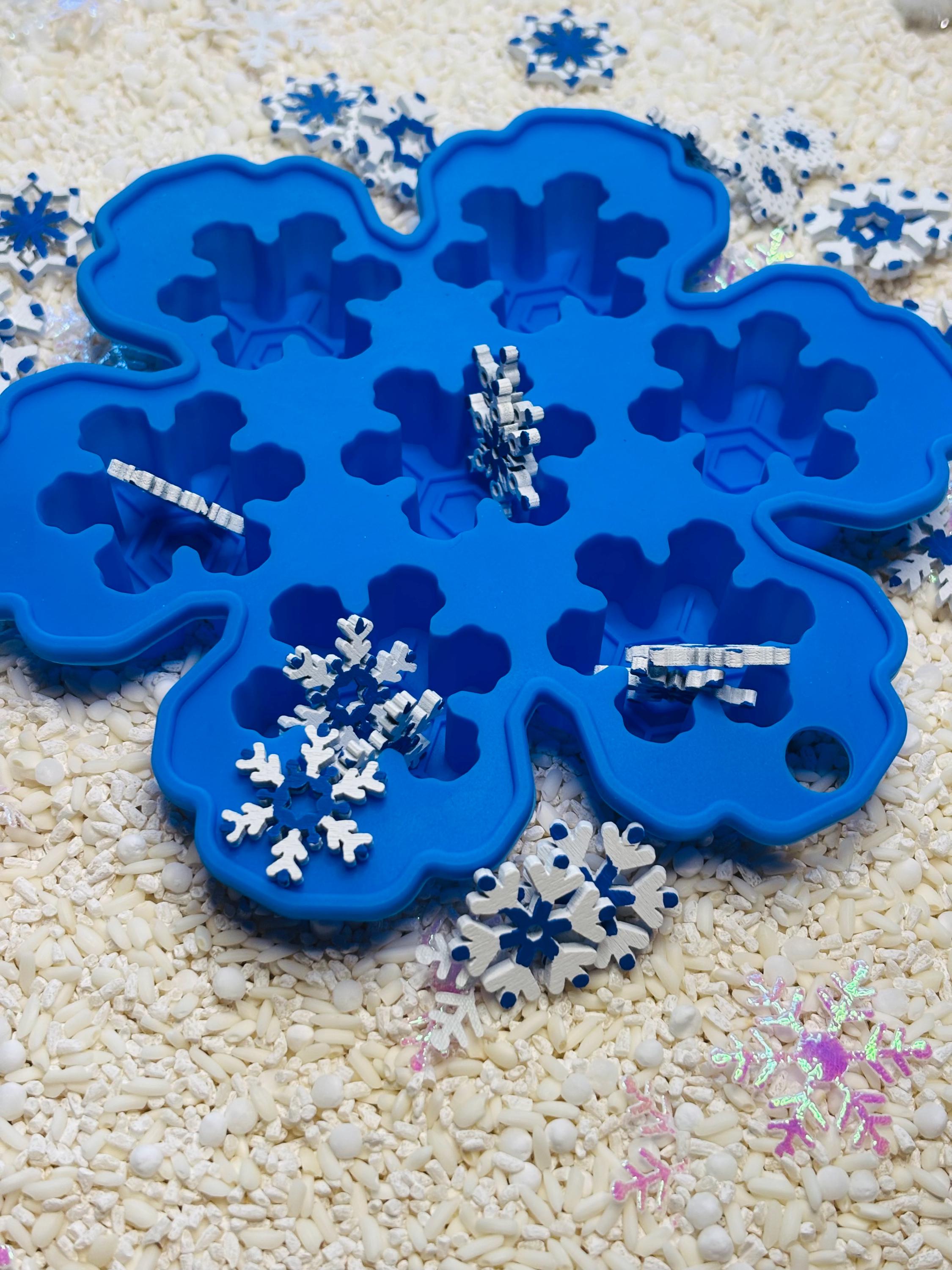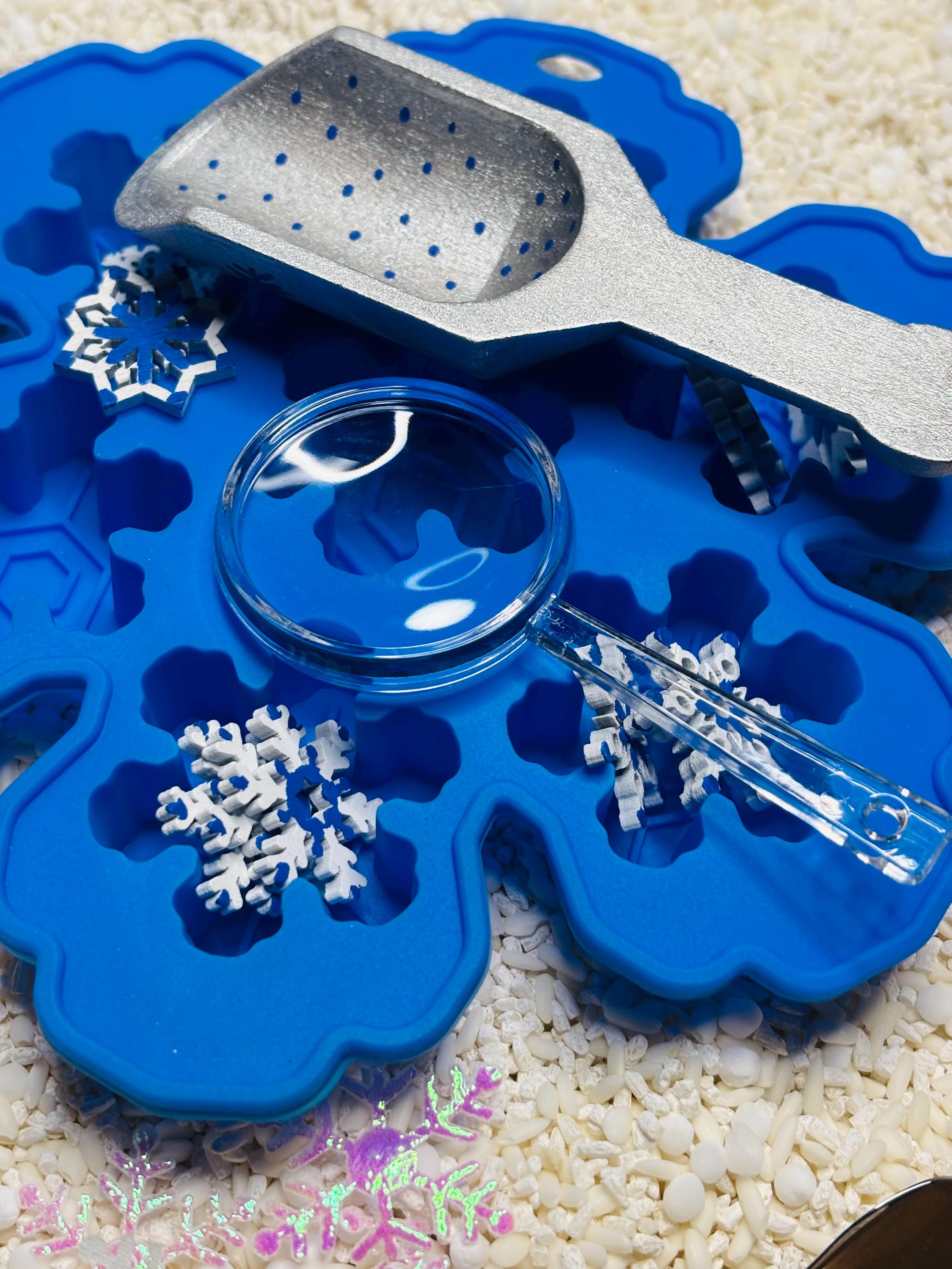 * Math - Encourage your child to count the number of snowflakes and sort them by shape, into the provided snowflake tray.