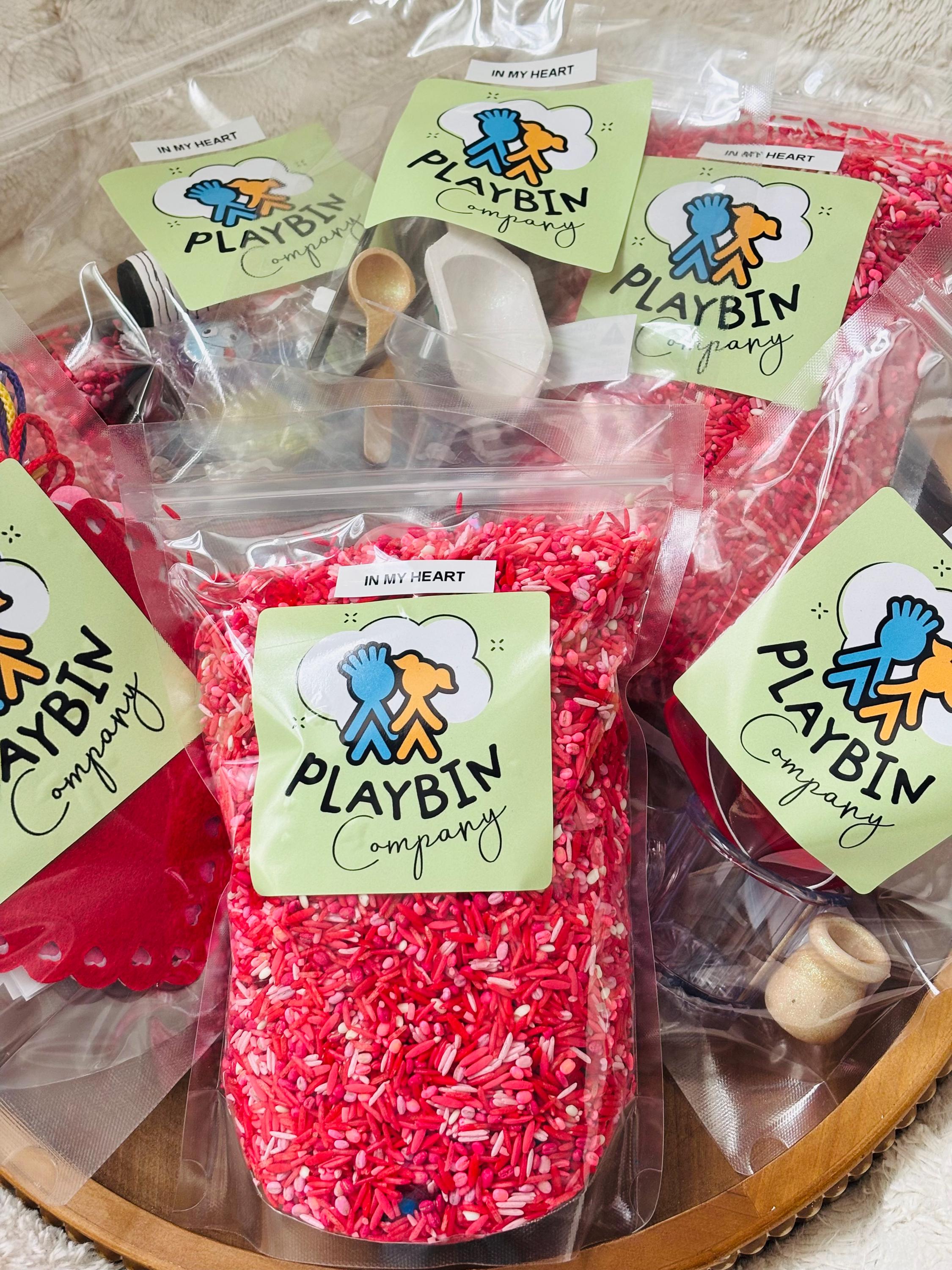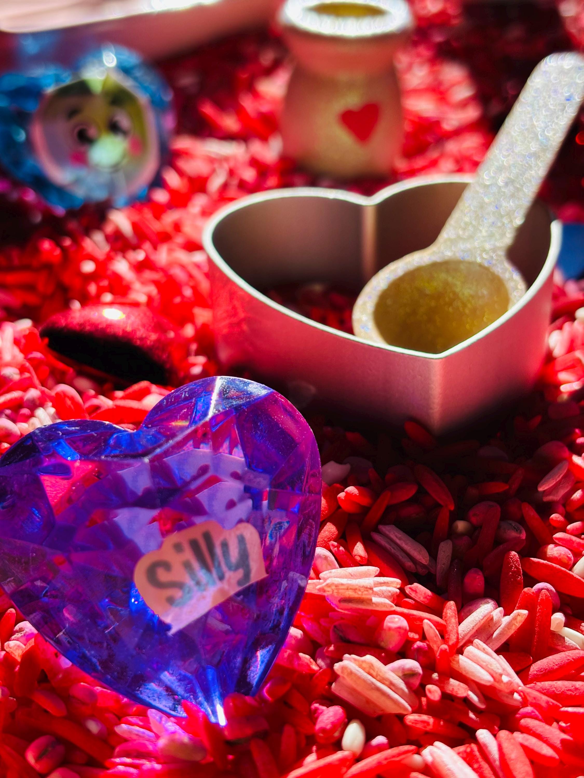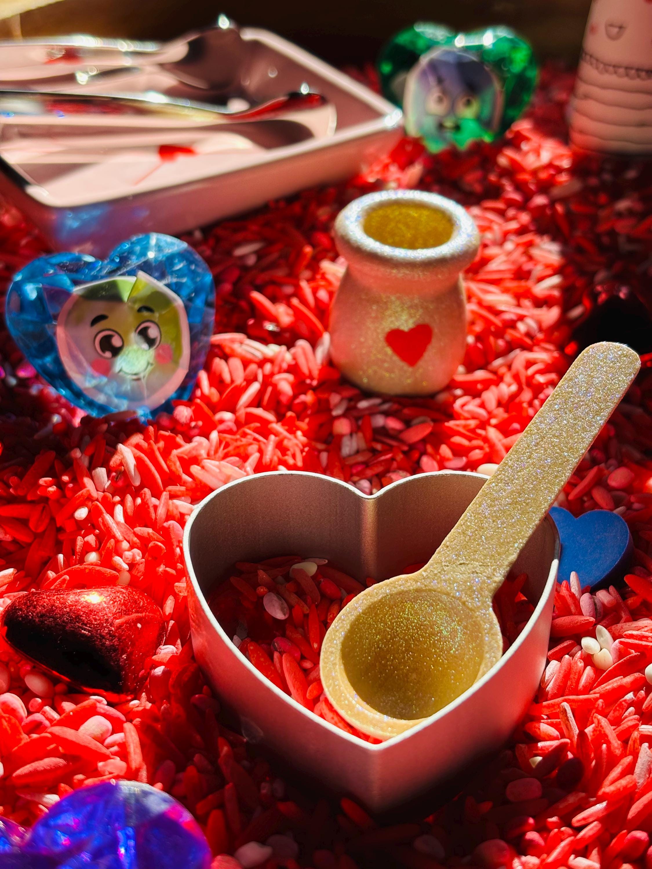 This 'In My Heart' sensory bin invites children to explore emotions through hands-on play, inspired by Jo Witek's heartfelt story. Filled with colorful textures, scoops and heart themed materials, the bin encourages children to express how feelings look, feel, and change - just like the hearts in the book.