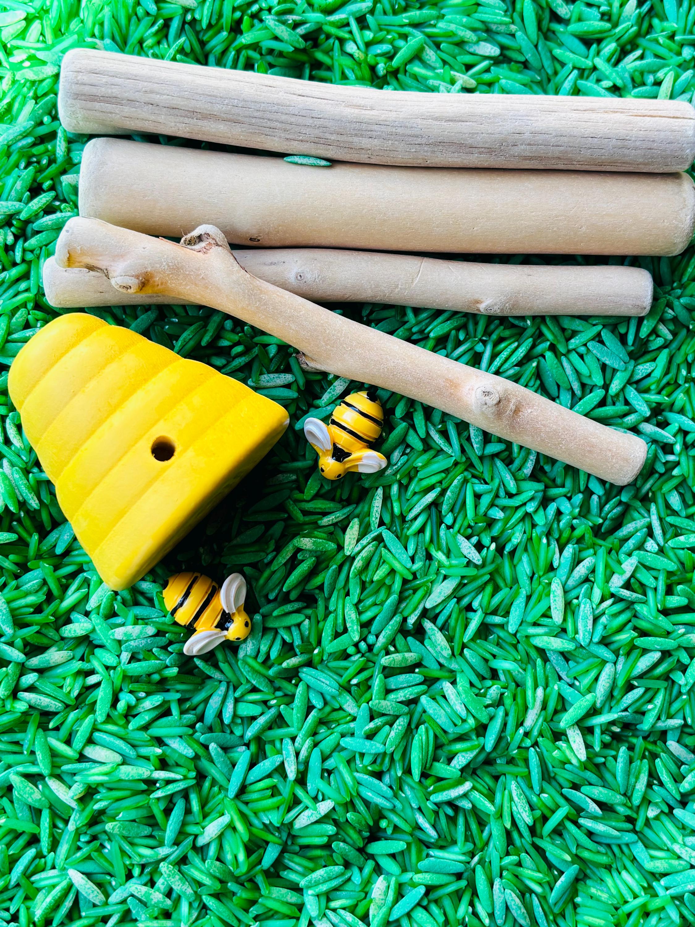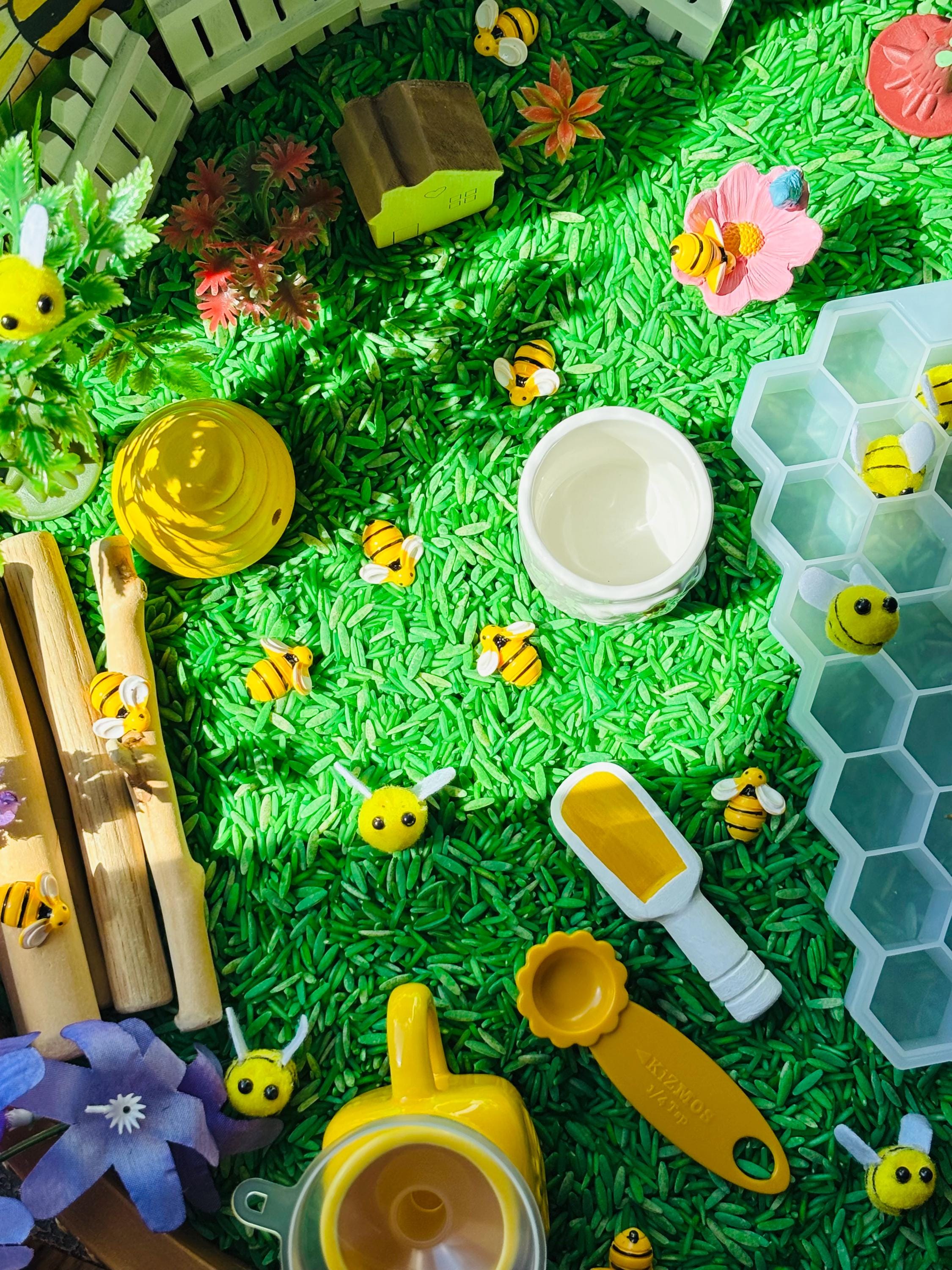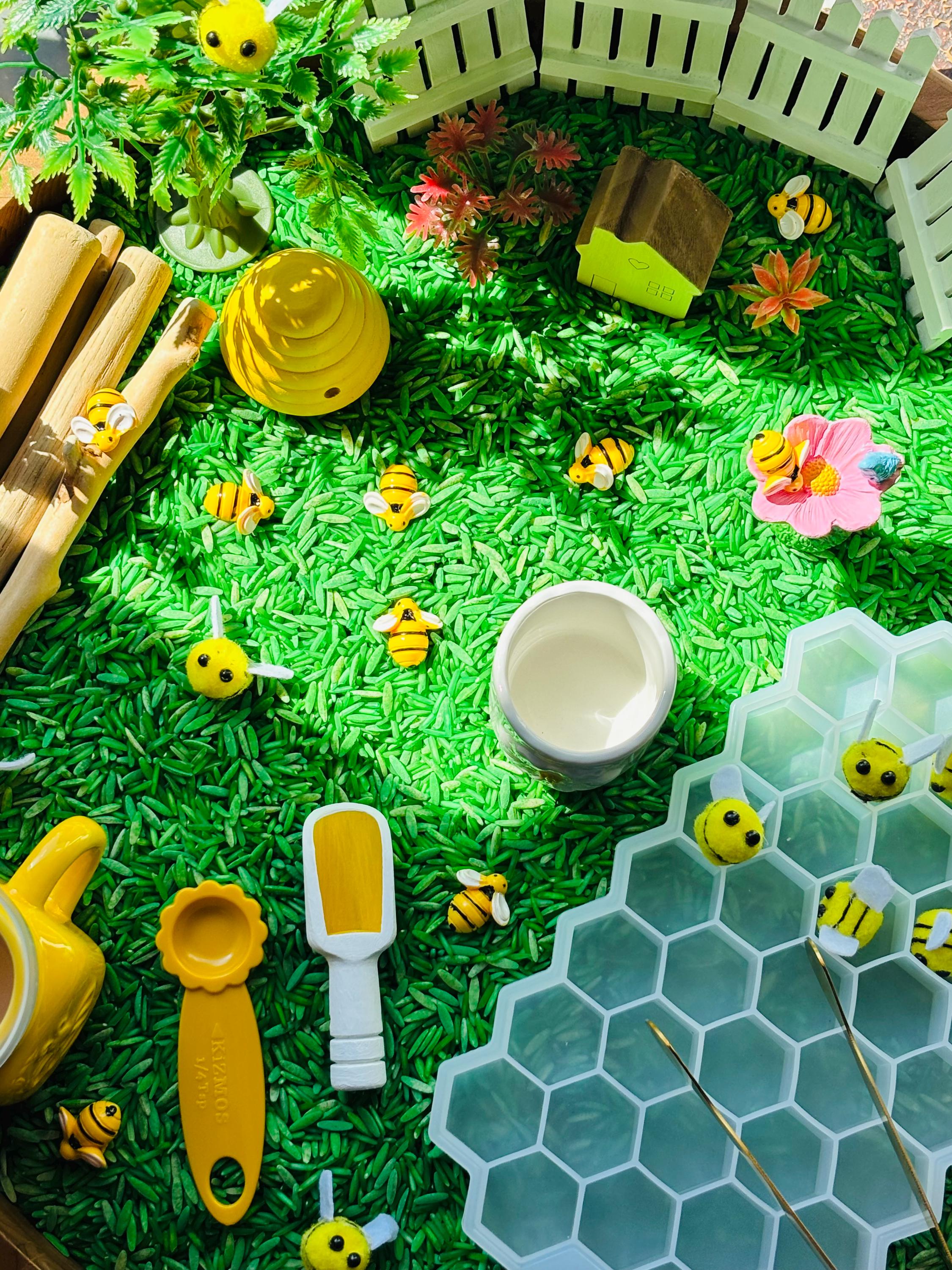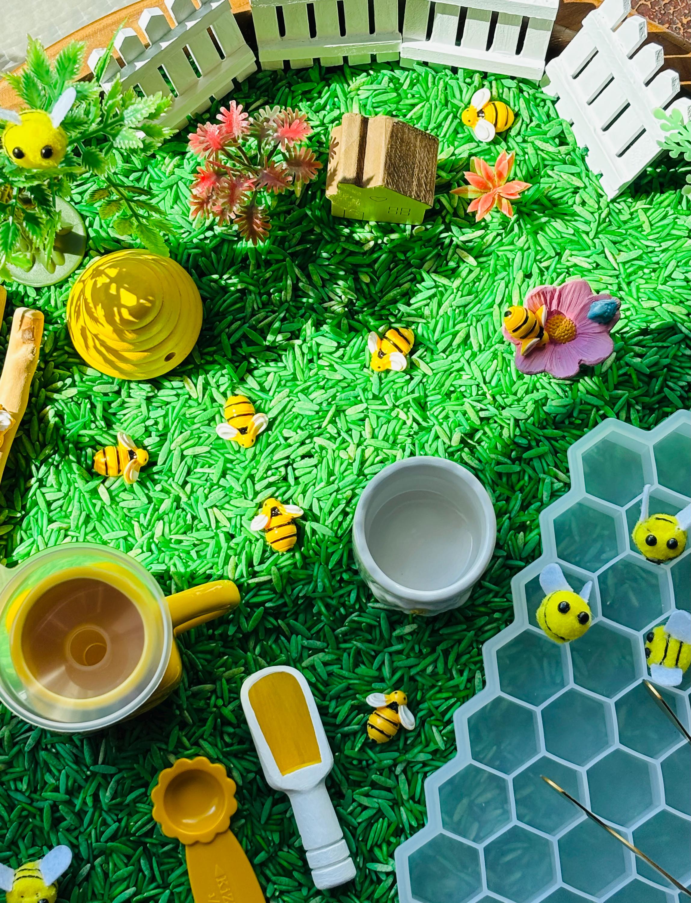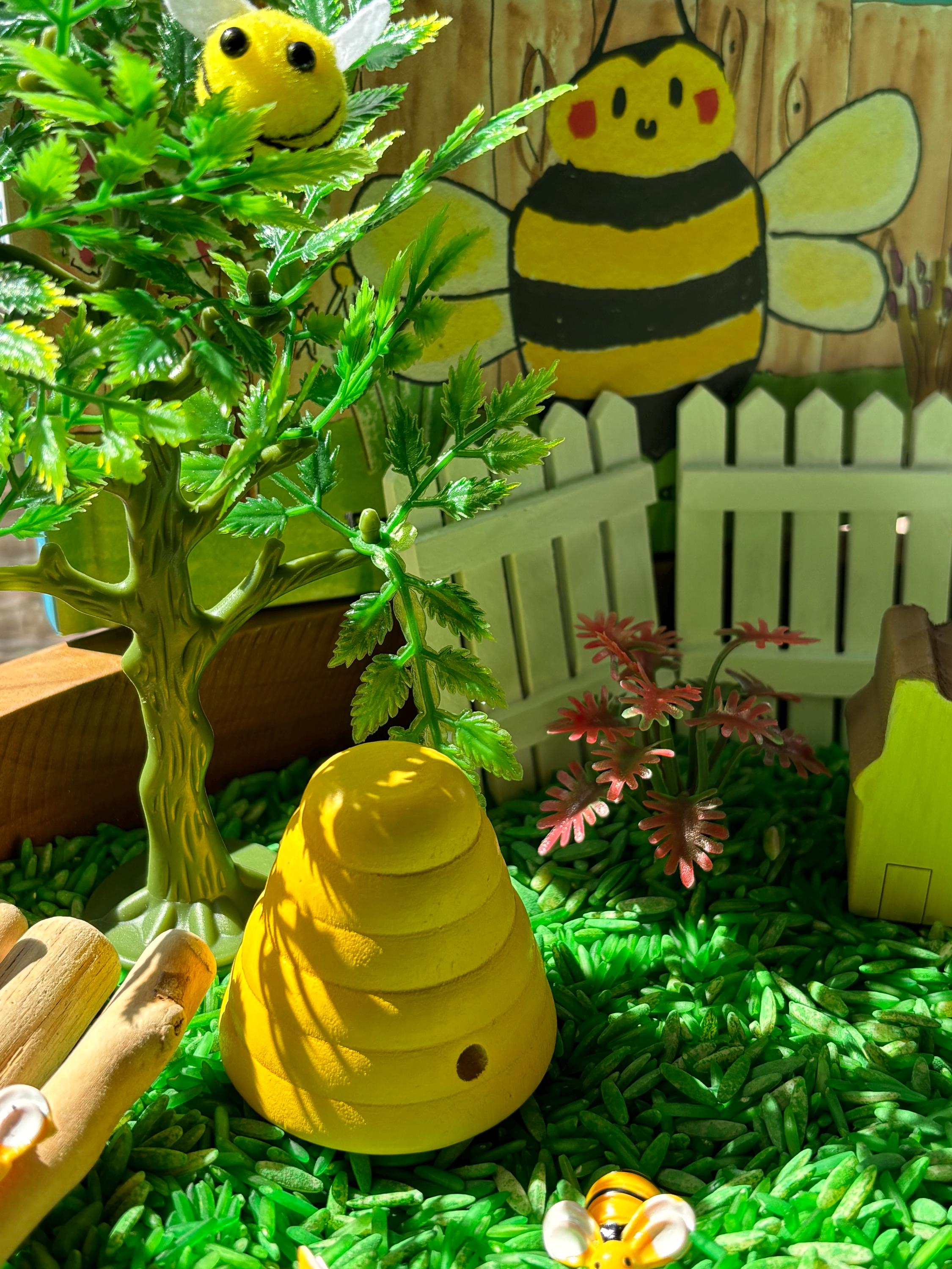 * Imaginative Play - The open ended nature of the bin encourages children to recreate the book in their own way bringing bees to life!