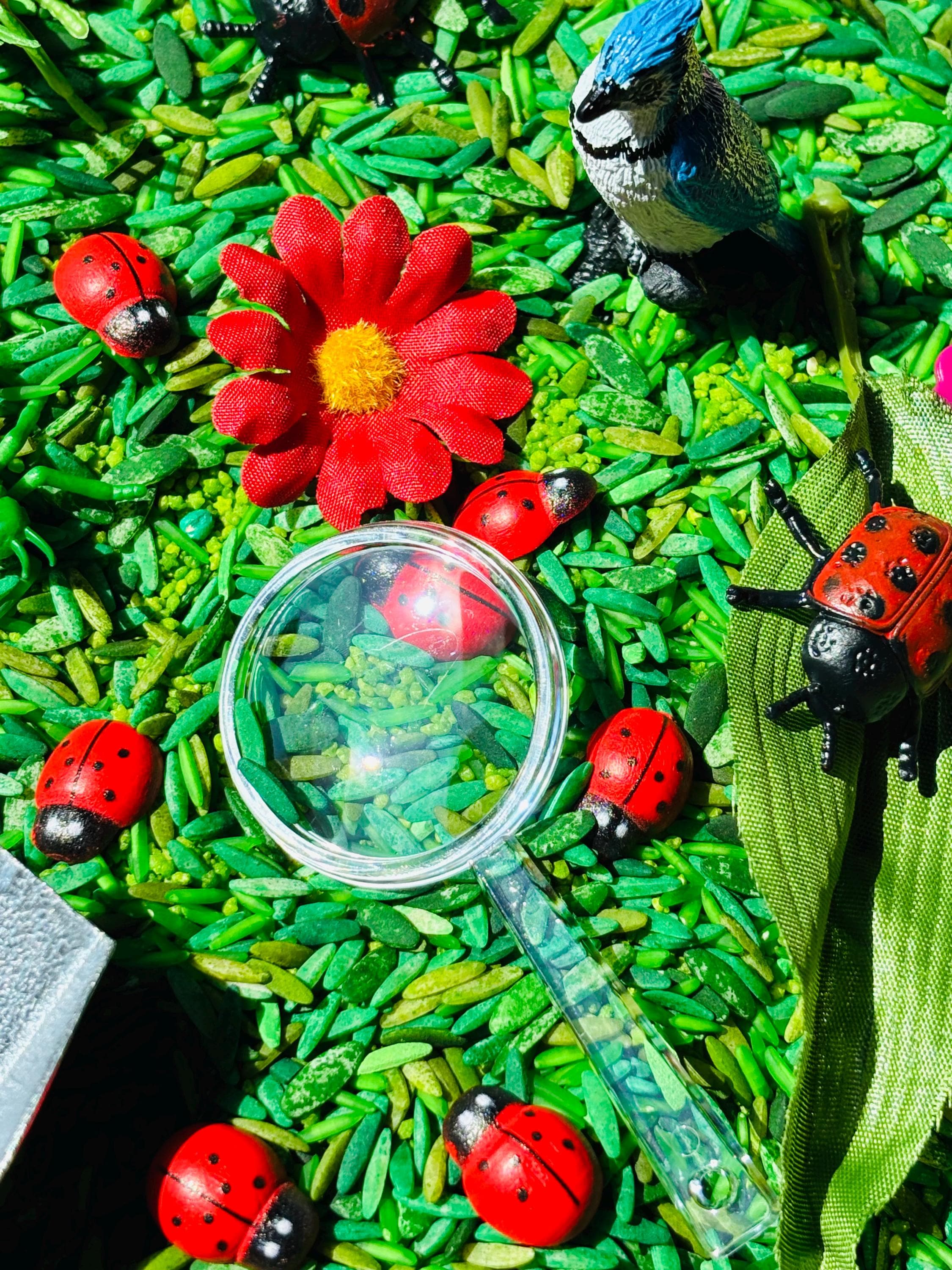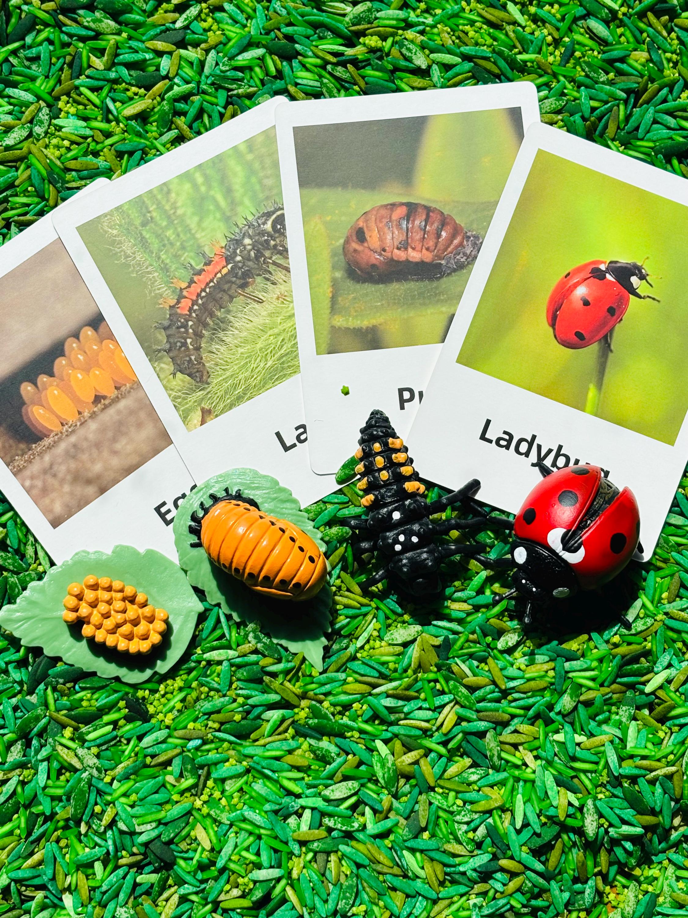 Inspired by the beautiful, fact filled book Ladybugs by Gail Gibbons, this sensory bin invites children to explore the fascinating lifecycle of ladybugs through hands-on play and discovery! Children can scoop, sort, and observe each stage while building a deeper understanding of how these tiny garden helpers grow and change.