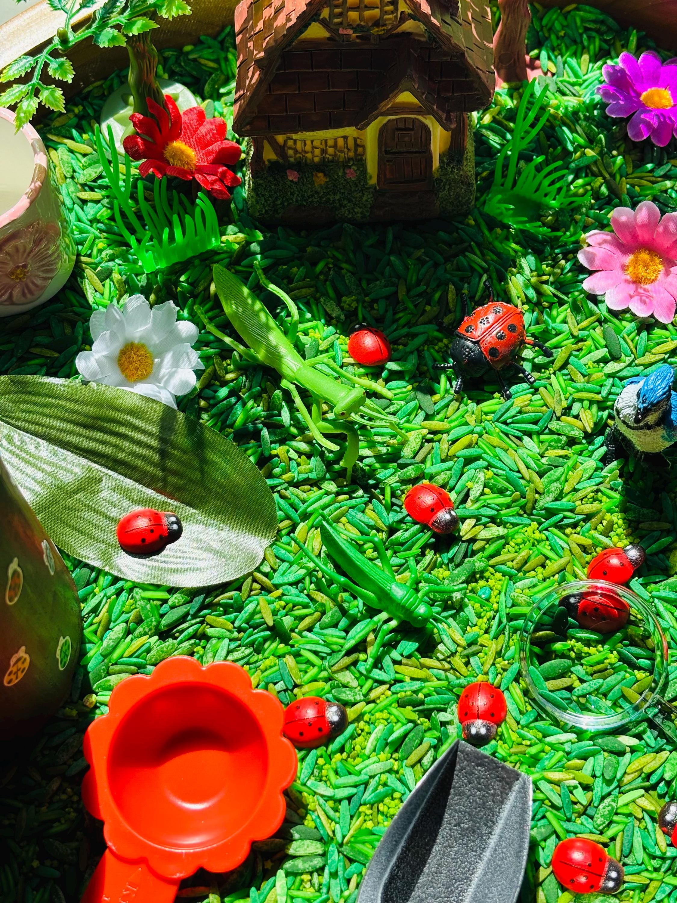 * Imaginative Play - The open ended nature of the bin encourages children to recreate the book in their own way bringing ladybugs to life!